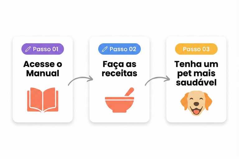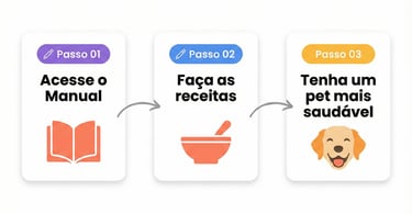São só três passos para você por em prática o Manual do Cão Saudável: